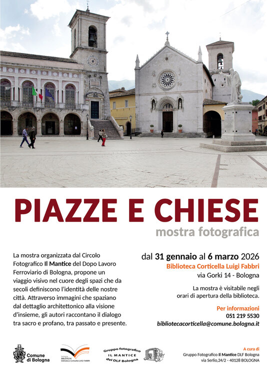La mostra fotografica Piazze e Chiese, organizzata dal Circolo Fotografico Il Mantice di Bologna, propone un viaggio visivo nel cuore degli spazi che da secoli definiscono l’identità delle nostre città.